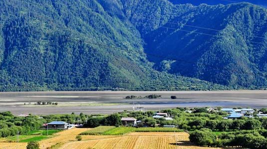 西藏林芝市巴宜區米瑞鄉色果拉村從2012年開始興辦養雞場、綿羊養殖場,發展果樹栽培和蔬菜大棚,擺脫了幾十年用糧食換果蔬的歷史。新華社記者 張汝鋒 攝  8月28日拍攝的林芝市巴宜區米瑞鄉色果拉村。
