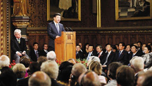 10月20日,中國國家主席習近平訪英期間在威斯敏斯特英國議會大廈發表演講,這是中國領導人第一次在英國議會發表演講。演講地設在英國議會大廈皇家畫廊,凸顯出此次演講的分量。這里是最金碧輝煌的大廳之一,只有舉辦重大活動時才會啟用。