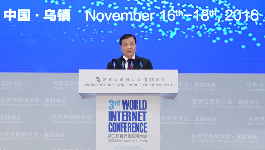 11月16日,中共中央政治局常委劉云山在浙江省烏鎮出席第三屆世界互聯網大會開幕式并發表致辭。