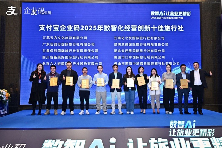 本次大會,還發(fā)布了“支付寶企業(yè)碼2025年數(shù)智領(lǐng)航創(chuàng)新標(biāo)桿旅行社”、“支付寶企業(yè)碼2025年綜合數(shù)智經(jīng)營標(biāo)桿旅行社”等多個獎項,對在支付寶旅游數(shù)字化發(fā)展的標(biāo)桿企業(yè)及服務(wù)商進行了表彰。(圖片由主辦方提供發(fā)布)
