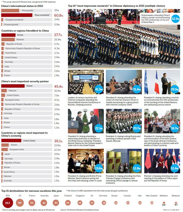 一項(xiàng)最新調(diào)查顯示,大部分受訪民眾認(rèn)為,2015年中國(guó)國(guó)際地位有所提升,中俄關(guān)系“令人滿意”。