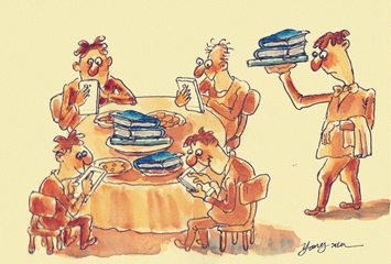 沉浸在手機(jī)中的人們忽略了精神食糧。