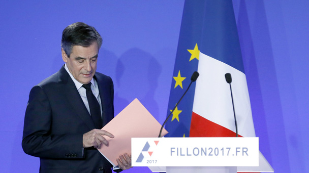 當地時間2月6日,法國2017年總統候選人弗朗索瓦·菲永在巴黎就“空餉門”召開新聞發布會。