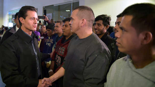 當地時間2月7日,135名被遣返回國的旅美墨西哥移民抵達墨西哥城,總統涅托親自前往機場迎接。
