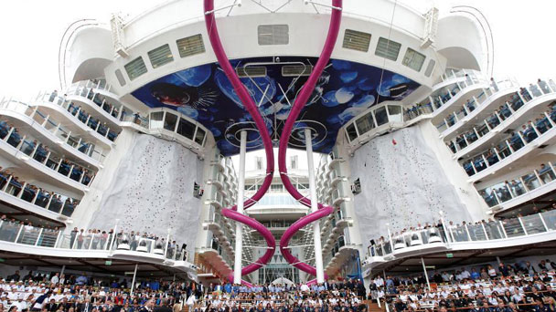 據(jù)外媒報道,世界上最大的游輪——12萬噸的海上和諧號(Harmony of the Seas)由法國造船廠于5月12日在40個月的工期后交付給業(yè)主。船上其它不得不提的閃光點還包括:一面巨大的攀巖墻,一條繩索滑梯,一處迷你高爾夫球場,一個沖浪模擬器和賭場。