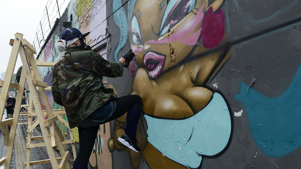 5月14日,第四屆“鄰里相聚(MEETING NEIGHBORHOOD)”街頭文化藝術(shù)節(jié)在北京百子灣二十二院街藝術(shù)區(qū)舉行。來自7個國家的60余位藝術(shù)家同時在800多平方米的墻面上進(jìn)行涂鴉創(chuàng)作。