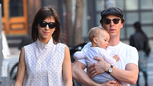 當地時間2016年4月1日,美國紐約,"卷福"本尼迪克特-康伯巴奇(Benedict Cumberbatch)一家外出,奶爸溫柔抱萌娃超有愛。