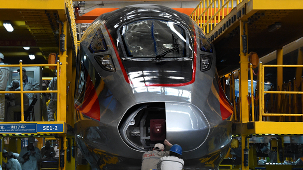 近日,最新16輛長編組“復興號”動車組正在中車青島四方機車車輛股份有限公司做最后的靜態調試,該編組投入運營后,“復興號”客運量將會實現倍增。