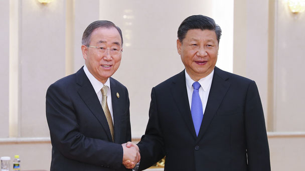 5月15日,國家主席習近平在北京人民大會堂會見博鰲亞洲論壇理事長潘基文。