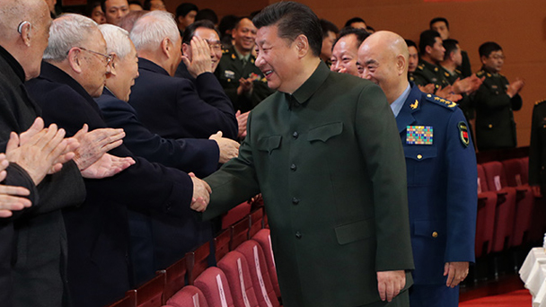 2月2日,中共中央總書記、國家主席、中央軍委主席習近平在北京接見武警部隊第三次黨代表大會全體代表。這是習近平同代表們親切握手。