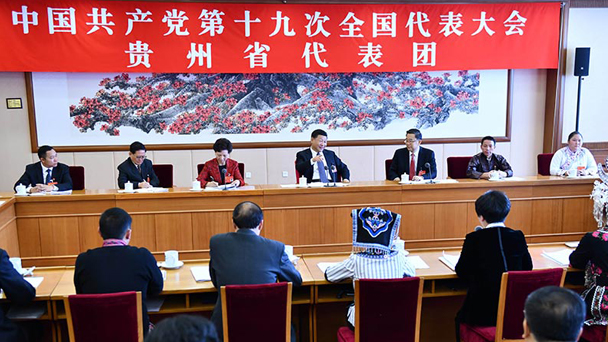 10月19日,習近平同志參加黨的十九大貴州省代表團討論。