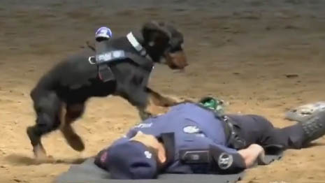 西班牙馬德里的警察在推特上公布一段視頻。視頻中,一名警察假裝暈倒在地,這時曾接受過心臟復(fù)蘇警犬龐喬(音)飛奔到奄奄一息的警官身邊,對其進(jìn)行施救。
