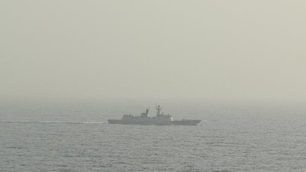 正在海上絲綢之路航行的貨輪中遠荷蘭輪于當地時間15日早晨在亞丁灣海盜區遇到了正在執行護航任務的中國海軍濱州艦(舷號515)。