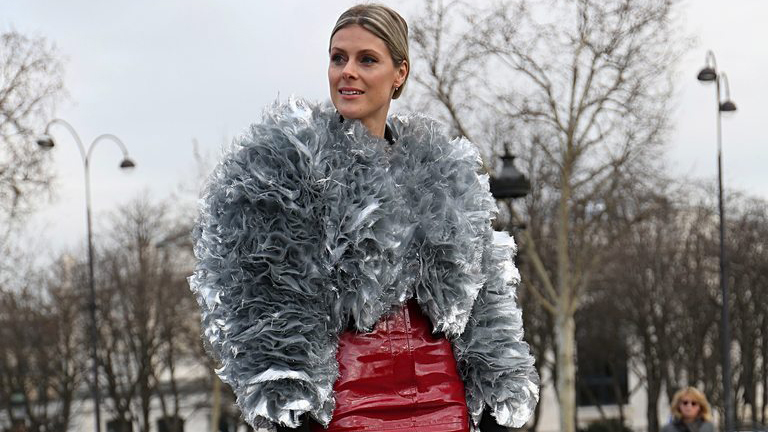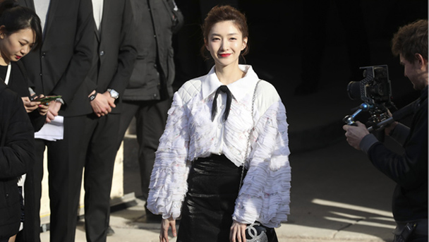 2018秋冬巴黎時裝周:江疏影穿黑色迷你小短裙亮相美腿吸睛