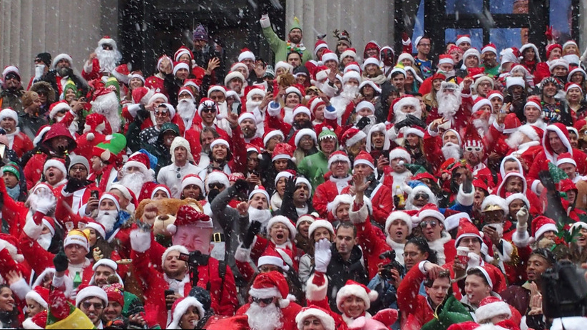 當(dāng)?shù)貢r(shí)間2017年12月10日,韓國(guó)首爾,在韓國(guó)首爾的COEX水族館,身著圣誕老人服裝的韓國(guó)潛水員與沙丁魚(yú)一同表演,慶祝即將到來(lái)的圣誕節(jié)。