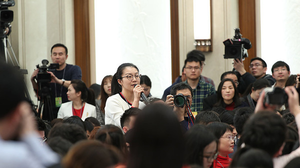 3月4日,十三屆全國人大一次會議在北京人民大會堂舉行新聞發布會。大會發言人張業遂就大會議程和人大工作相關的問題回答中外記者的提問。