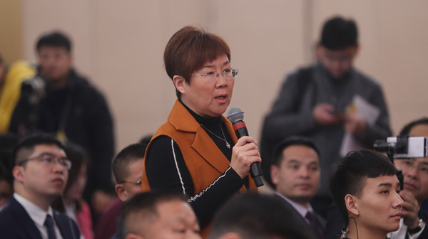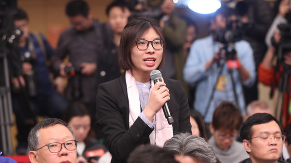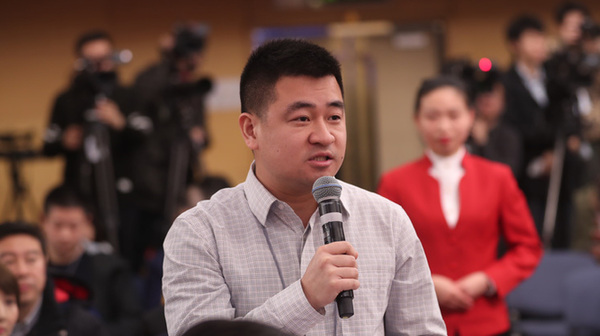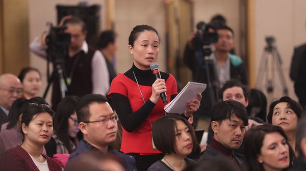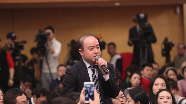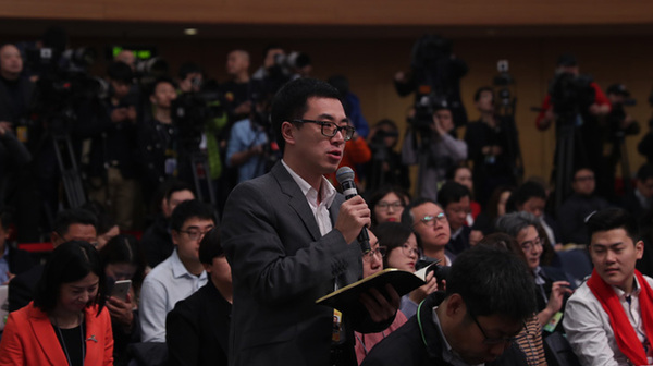 十三屆全國(guó)人大一次會(huì)議新聞中心于3月7日上午在梅地亞中心多功能廳舉行記者會(huì),邀請(qǐng)財(cái)政部部長(zhǎng)肖捷,副部長(zhǎng)史耀斌、胡靜林就“財(cái)稅改革和財(cái)政工作”相關(guān)問(wèn)題回答中外記者提問(wèn)。圖為中國(guó)日?qǐng)?bào)記者提問(wèn)。